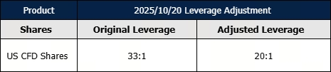 1. All US Shares products leverage will be adjusted to 20:1.